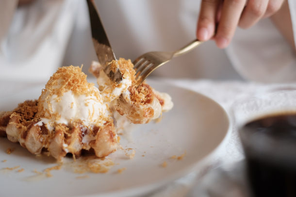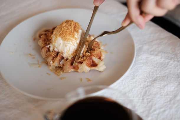 ・クリームと冷たいアイス、あつあつクロッフルの生地が口の中でとろける…