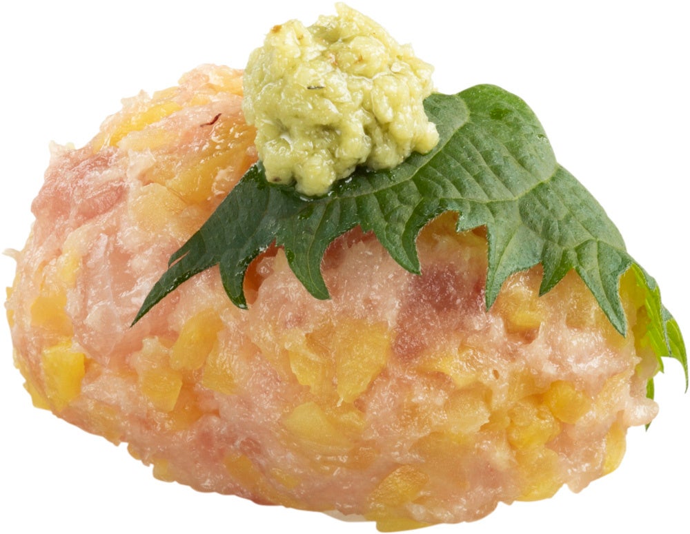 その他にも、まぐろの中でも脂の甘みが特徴的な天然インド鮪を使用した「天然インド鮪ねぎとろ」や、天身と呼ばれる部位のみを厳選し、九州産の海苔で巻いた「おいしい海苔の鉄火巻」等のこだわりのおすしから、食感の良いまぐたくでシャリを包んだ見た目も驚きの「まぐろのおはぎ」、店内で揚げたマグロカツにデミグラスソースをたっぷりかけた「マグロデミカツ」等の創作すしまで、「まぐろ」商品が目白押しです。