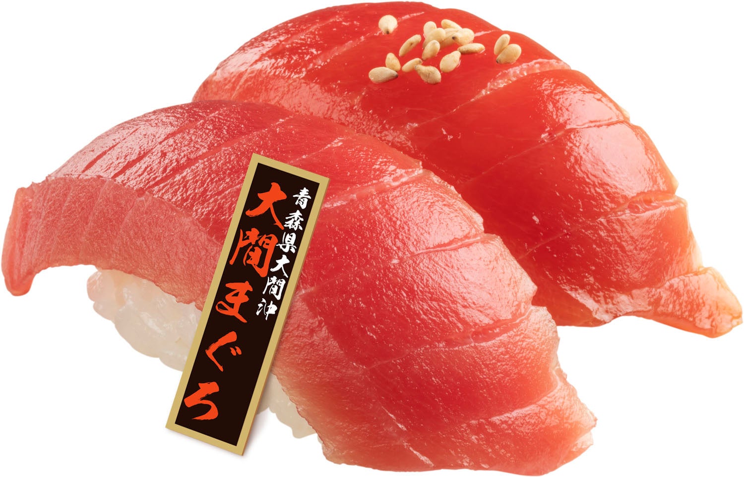 さらにフェア後半からは、目玉の二つ目である大間で水揚げされた天然本鮪が登場。高級ブランドとして知られている大間の本鮪を、スシローで初めて全国にて販売いたします。今回ご提供する本鮪は、より味が濃厚とされる大型の魚体のみを厳選。「大間の天然本鮪食べ比べ」は、まぐろの旨みをそのままダイレクトに味わえる赤身と、店内で醤油漬けするひと手間を加えた漬け赤身の2貫食べ比べでご用意いたしました。