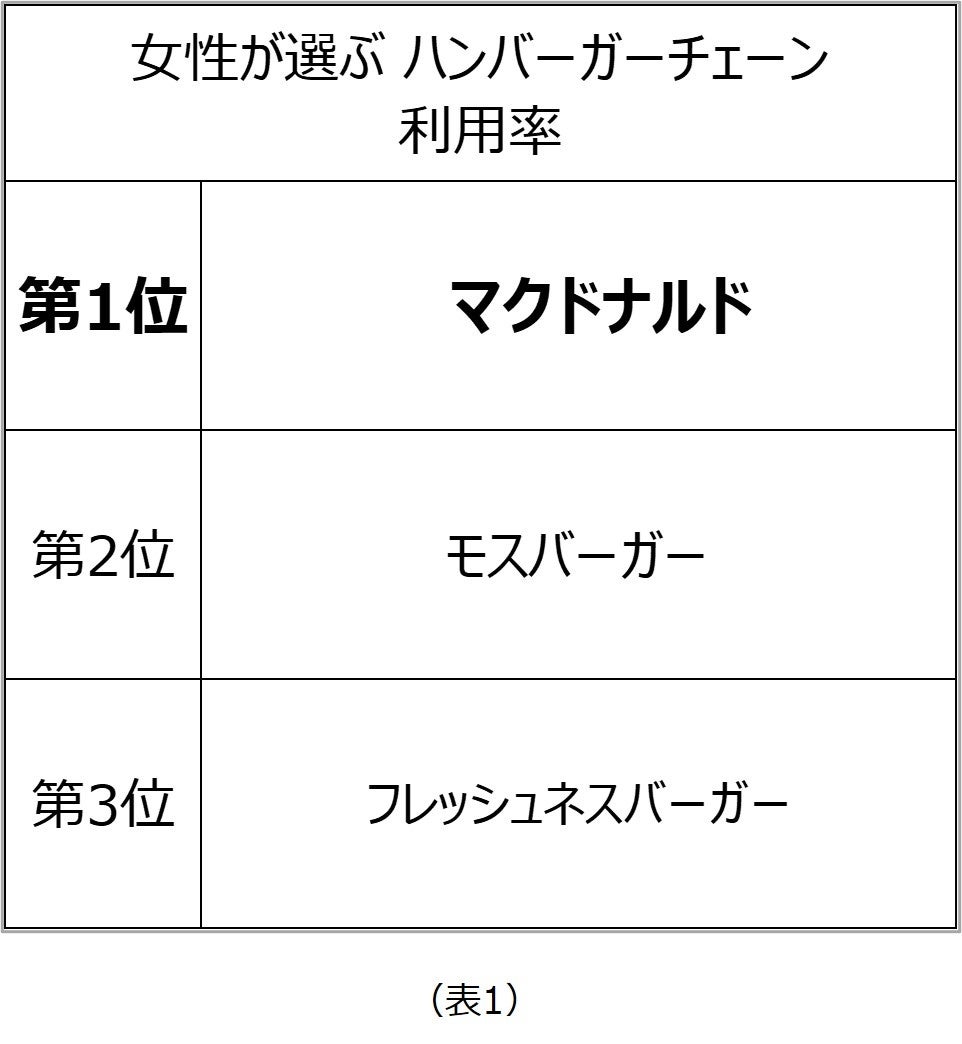 - 今回のテーマは女性が選ぶ「ハンバーガーチェーン」のランキング