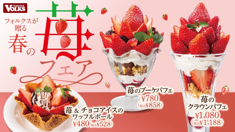 株式会社アークミール(本社:埼玉県さいたま市、代表取締役社長:柳 先)が運営する『フォルクス』では、2022年2月18日(金)から『春の苺フェア』を開催いたします。