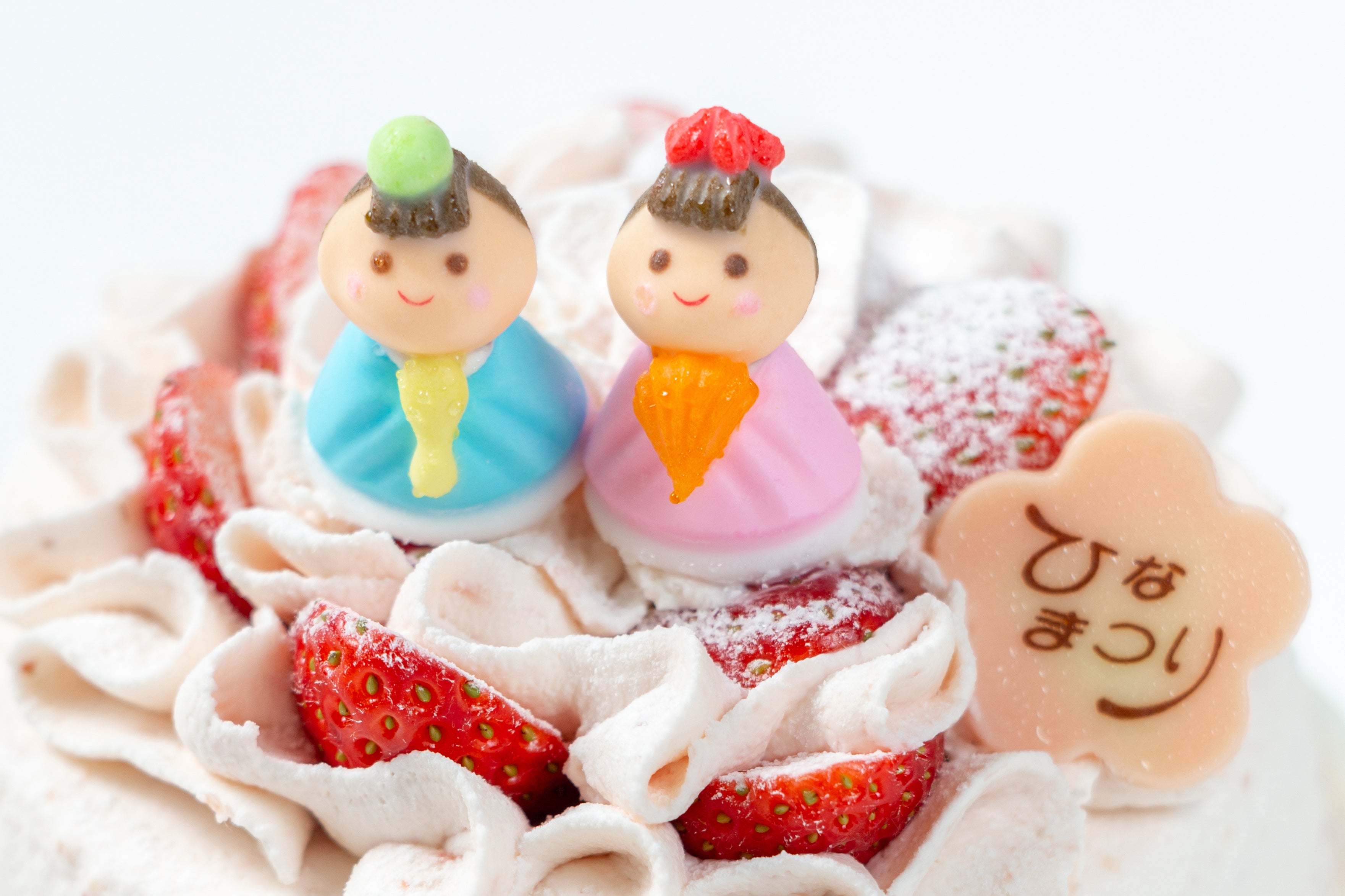フレッシュないちごから作った自家製いちごピューレを生クリームに練りこんだ、くちどけが良くいちごの香りと甘酸っぱさが心地よい、フルーツピークスこだわりのいちごクリームを使用しています。可愛らしいお雛様のオーナメントと、フリル状にトッピングしたいちごクリームの見た目がマッチした、ひな祭りのお祝いにおすすめのタルトです。