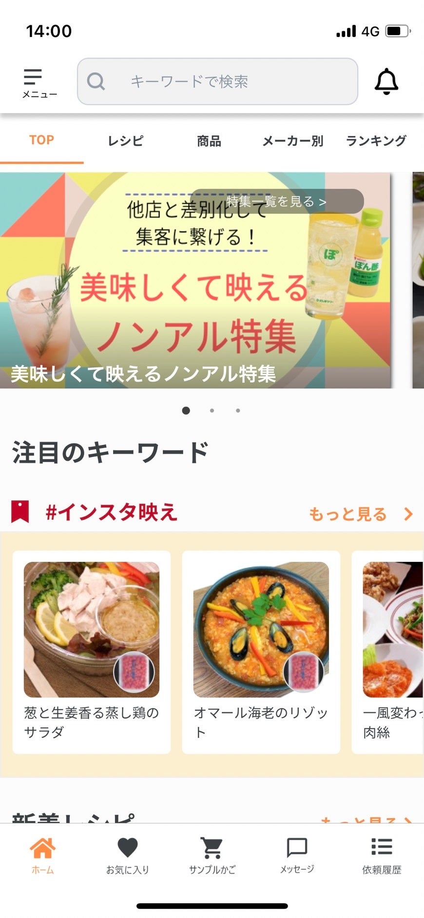『Reci BASE』は、飲食店様向けにに特化した“業務用食品メーカーの商品とその商品をアレンジしたレシピ情報”と“レシピの想定原価やサンプル依頼がワンクリック”で依頼可能な、今までになかったサービスです。