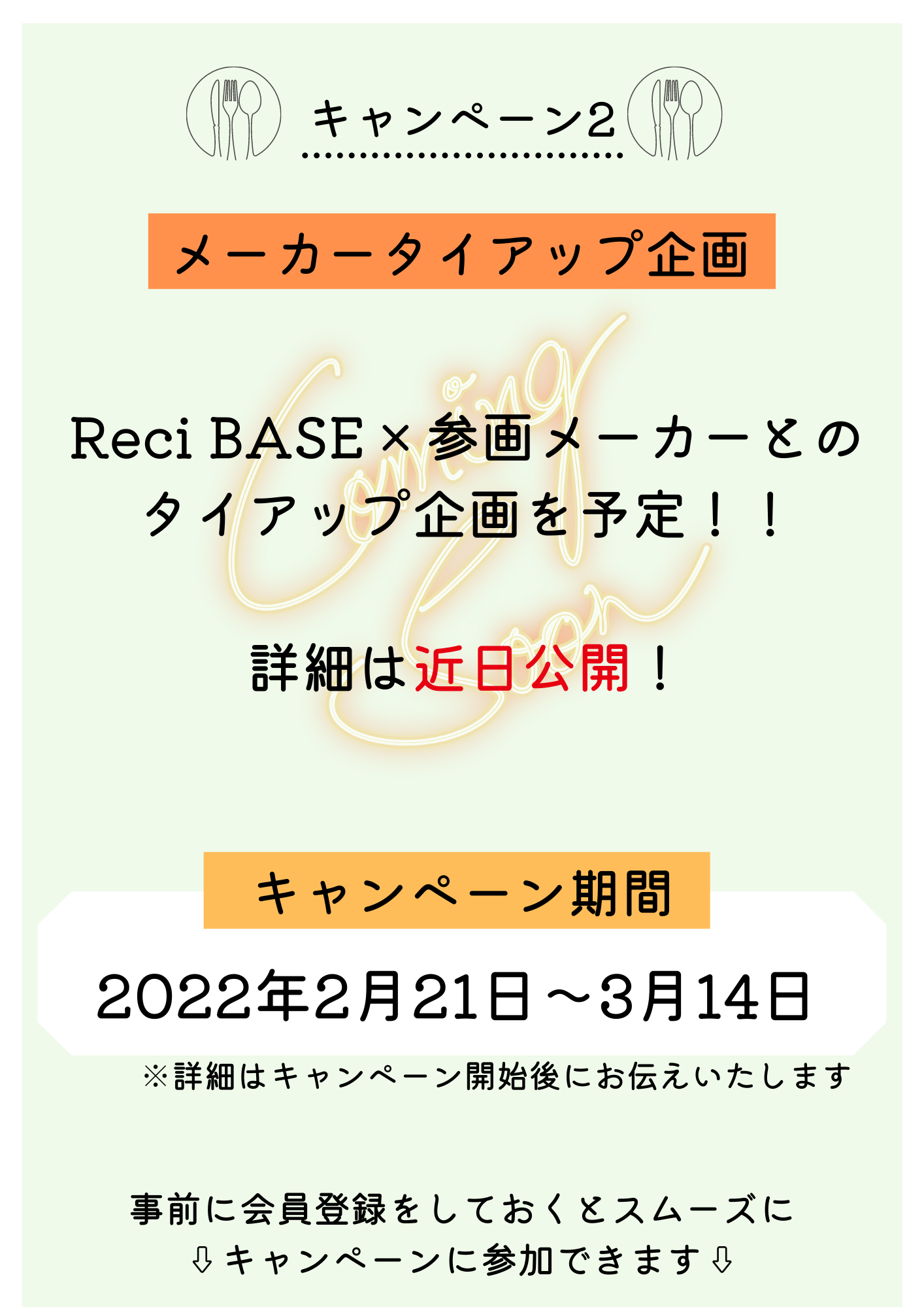 詳細は決まり次第、『Reci BASE』公式サイトや会員様向けのメールマガジンにてお知らせいたします。