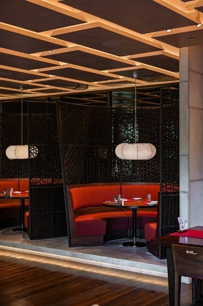 2016年10月に開業したフォーシーズンズホテル京都は、平家物語にも記された800年の歴史を受け継ぐ名庭「積翠園」を擁するラグジュアリーホテルです。ホテル1階に位置する「ブラッスリー」は、高さ9メートルの大きな窓からその名庭を見渡し、店内にはスタイリッシュな空間が広がります。庭園を見渡すテラスを備えたその開放的なインテリアデザインは、「Kokai Studios(コカイ・スタジオ)」によって手がけられ、国際的なインテリア専門誌「INTERIOR DESIGN(インテリアデザイン)」におけるベスト・オブ・イヤーアワード、ホテルダイニング部門において2017年のショートリストに選ばれています。