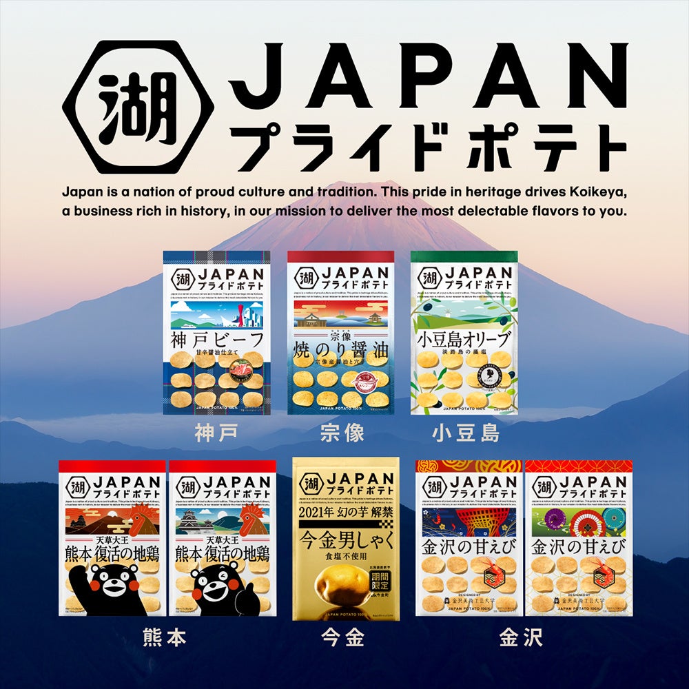 今後も湖池屋は、日本のポテトチップスの老舗として「湖池屋 JAPAN PRIDE プロジェクト」を推進し、「JAPANプライドポテト」シリーズを通じて「日本の誇り」である風土・文化や、それが生み出す素材を全国へ発信することで、地域への貢献へとつなげていきます。