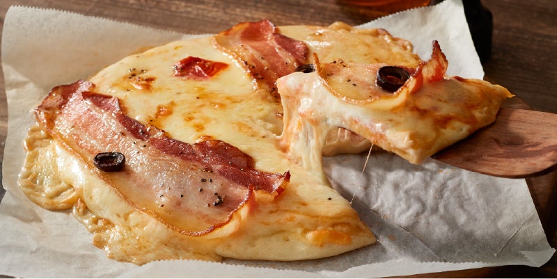 とろけだすチーズと食べ応えのあるベーコンで見た目からも美味しさが溢れだし、クセになるベーコンピッツァです。
