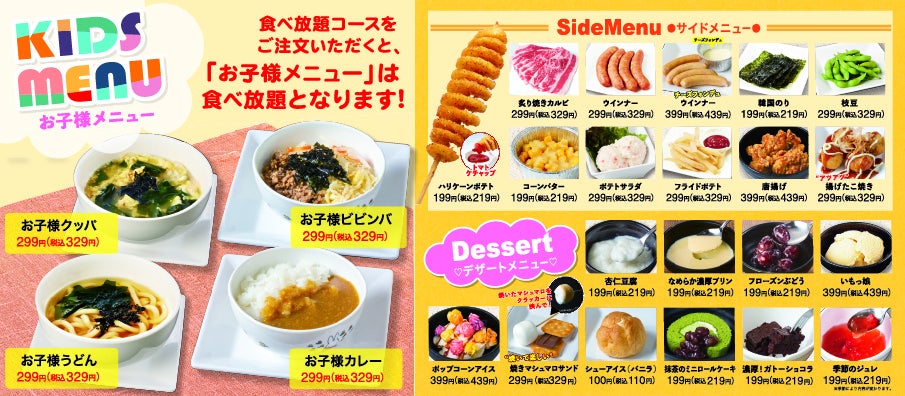 食べ放題コースをご注文いただくと、「お子様メニュー」も食べ放題となります。