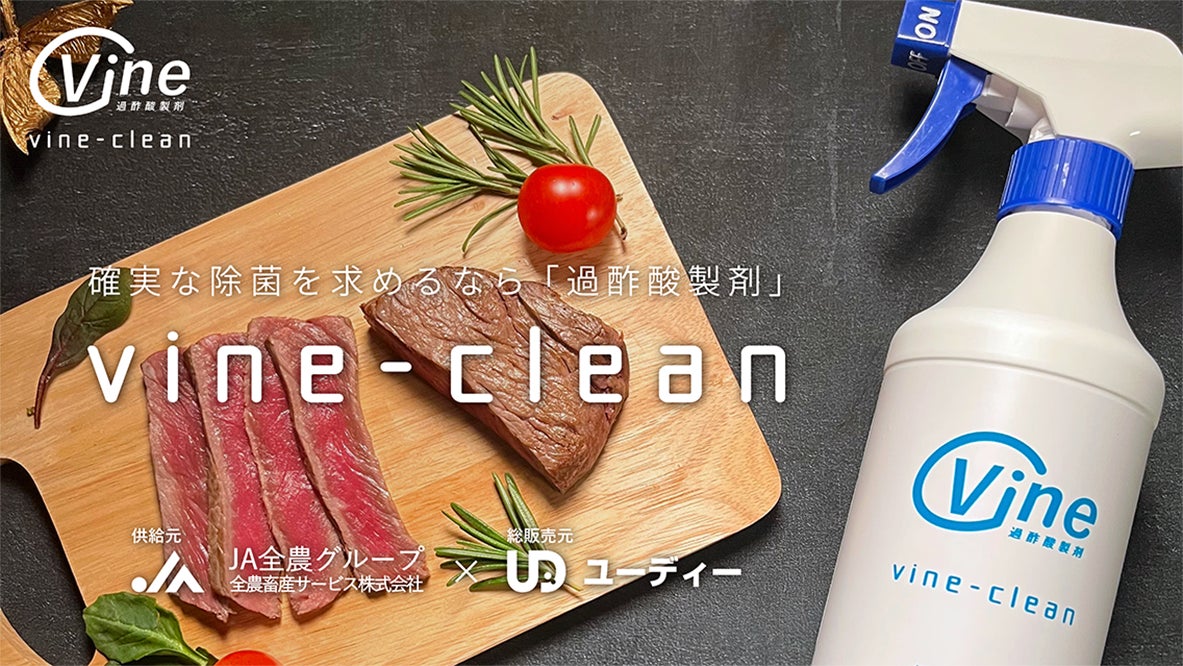 株式会社ユーディー(代表取締役:塚野光男、所在地:川崎市高津区)は、高水準の除菌力を持ち、食品添加物規格に適合した過酢酸製剤ビネクリーンを、総販売代理店として2022年2月17日より発売開始します。ビネクリーンはJA全農グループである全農畜産サービス株式会社(代表取締役社⻑:種田貴至、所在地:江東区冬木)が供給元となり、食を扱う現場から、日常的な衛生管理が求められるあらゆる場所において、安心して使用できる除菌剤として国内普及を目指します。