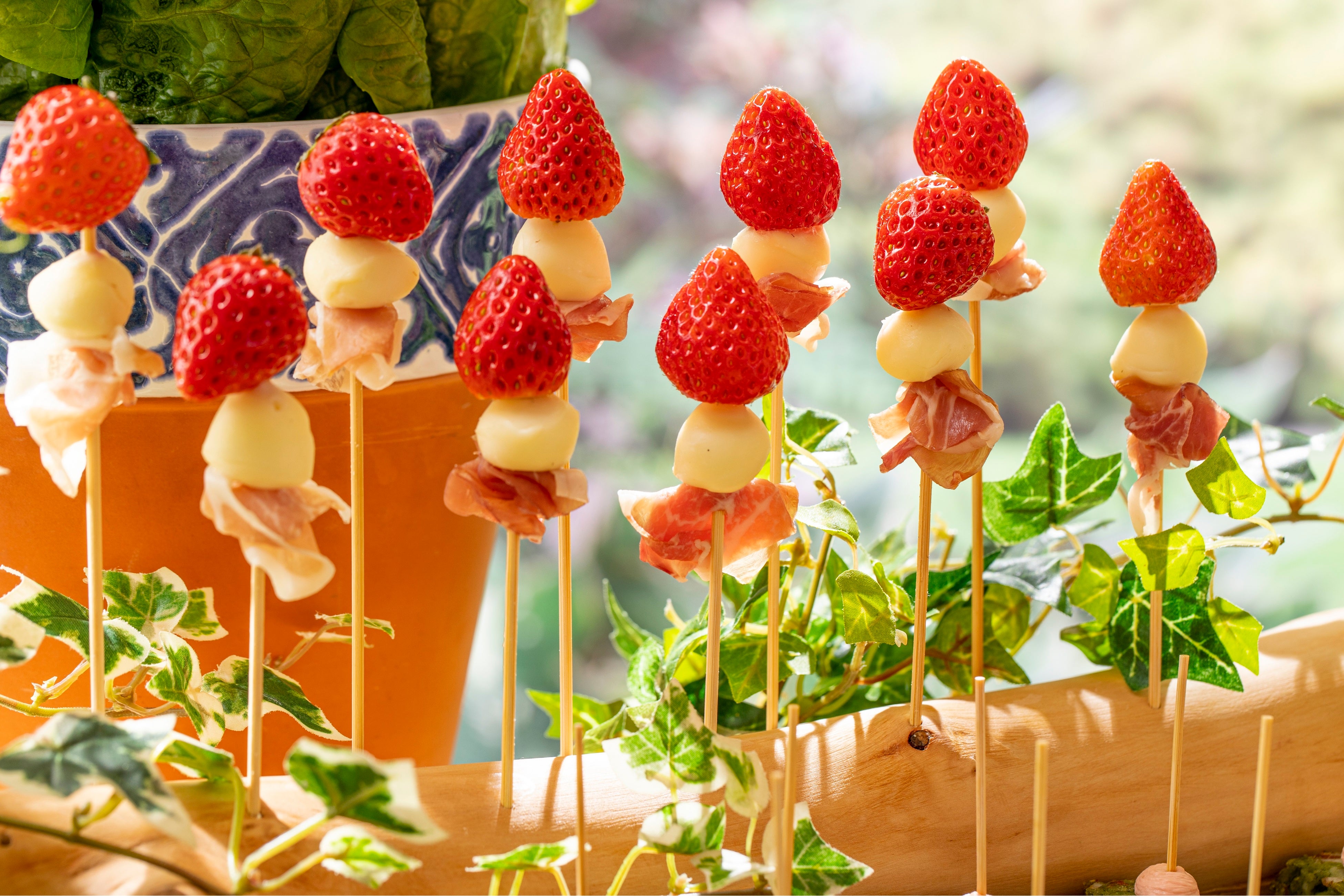 甘酸っぱい苺と生ハムの塩気、ミルクチェリーの3つの食材のハーモニーをお楽しみください。