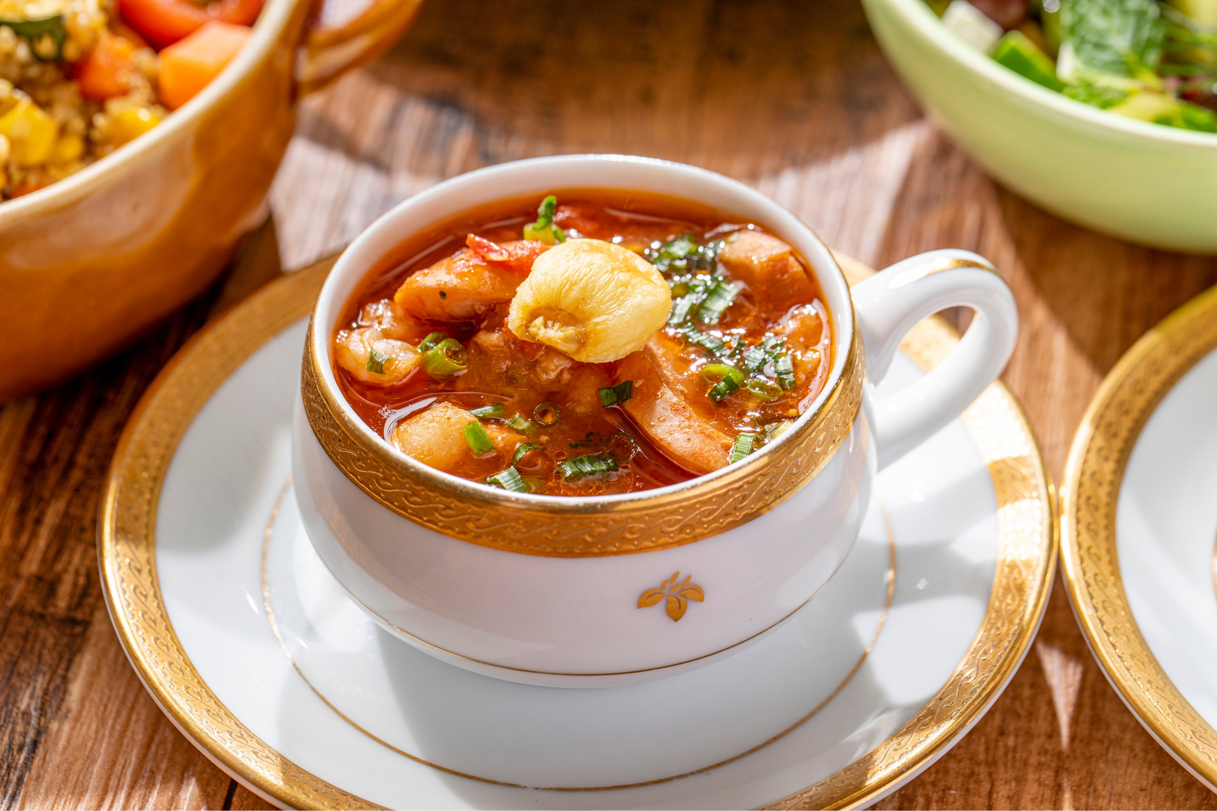 メキシコの伝統的な煮込み料理ポソレ。ポークのうまみたっぷりのスープ仕立てに、がりがりっとした食感が楽しいジャイアントコーンをアクセントに。