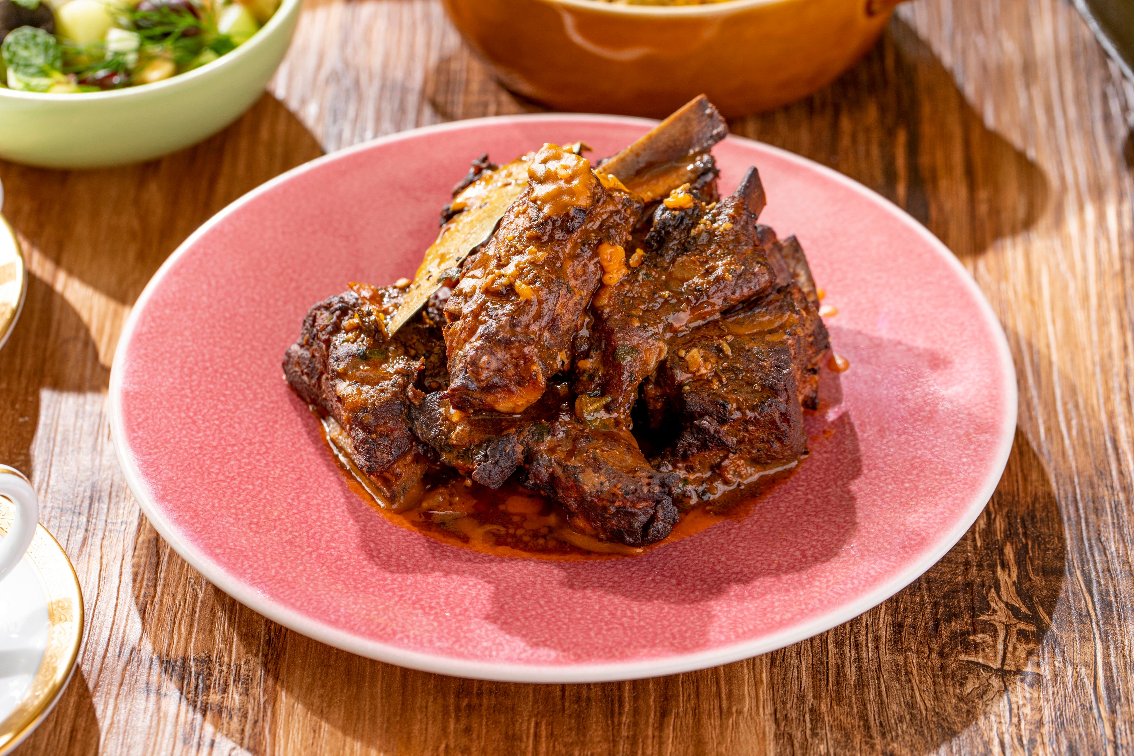 柔らかく煮込んだスペアリブにウイスキー薫るバーベキューソースを絡め、隠し味に安城産の白だしを。