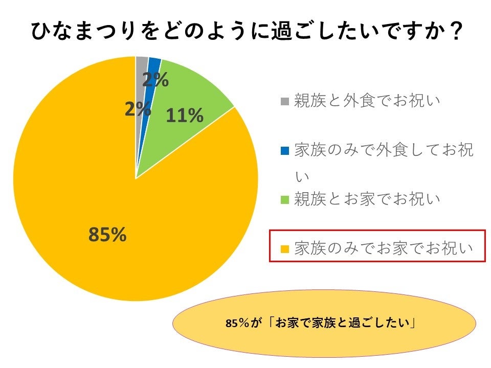 また、今までひな祭りを祝ったことor祝ってもらったことがある産直アウル利用者233人のうち、85%の人が「お家で家族と過ごしたい」と回答しました。(※図2参照)