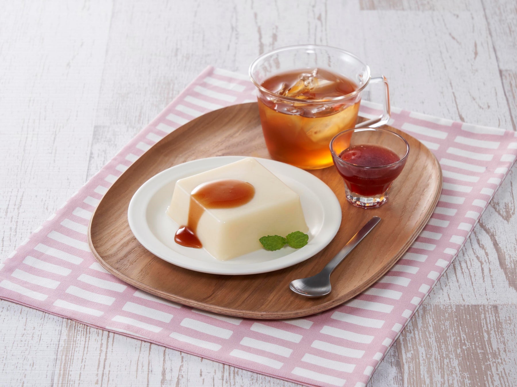 乳製品を使用せず、寒天の種類や配合にこだわり、とろけるなめらかな食感に仕上げました。別添の「マンゴーソース/いちごソース」は、豆乳と相性が良く、果実のフレッシュ感や彩りを楽しめます。