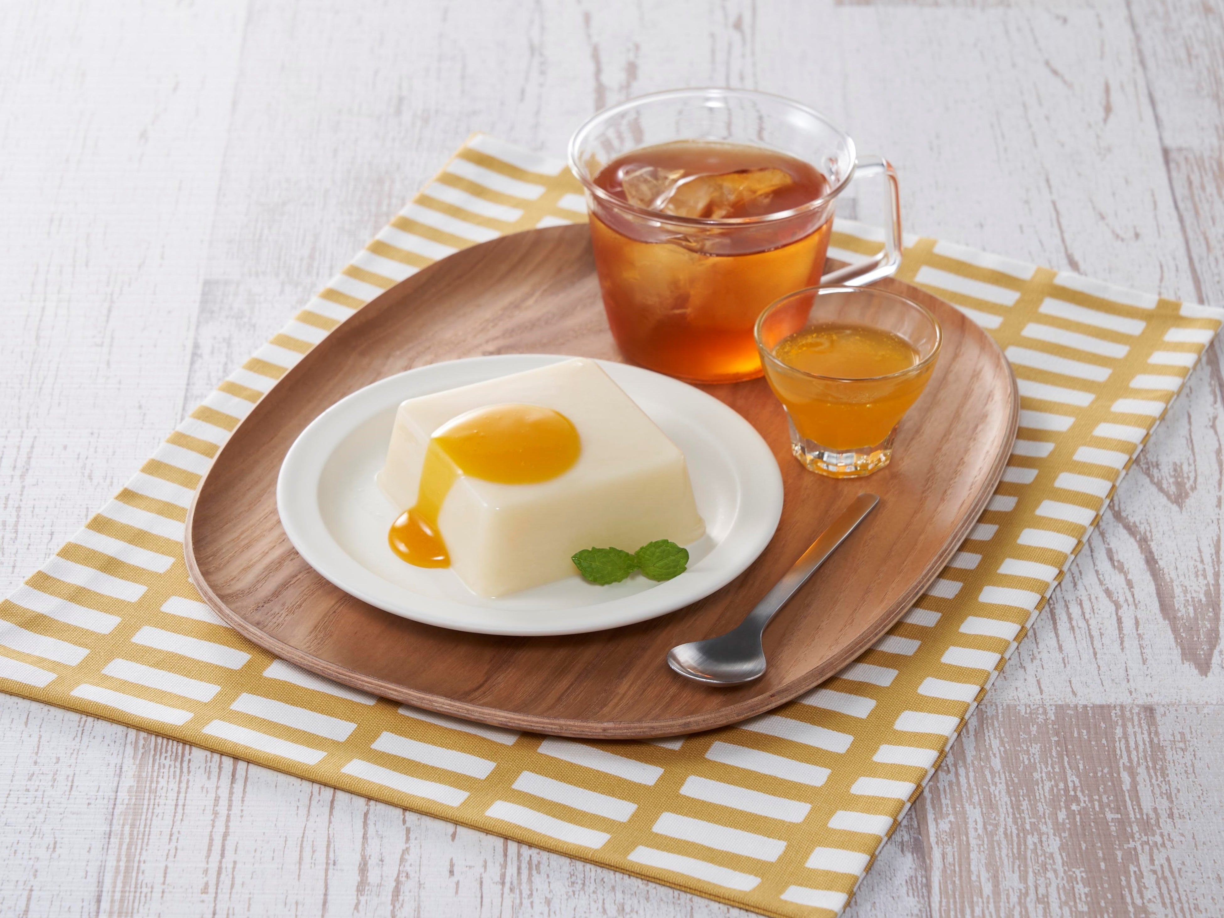 乳製品を使用せず、寒天の種類や配合にこだわり、とろけるなめらかな食感に仕上げました。別添の「マンゴーソース/いちごソース」は、豆乳と相性が良く、果実のフレッシュ感や彩りを楽しめます。