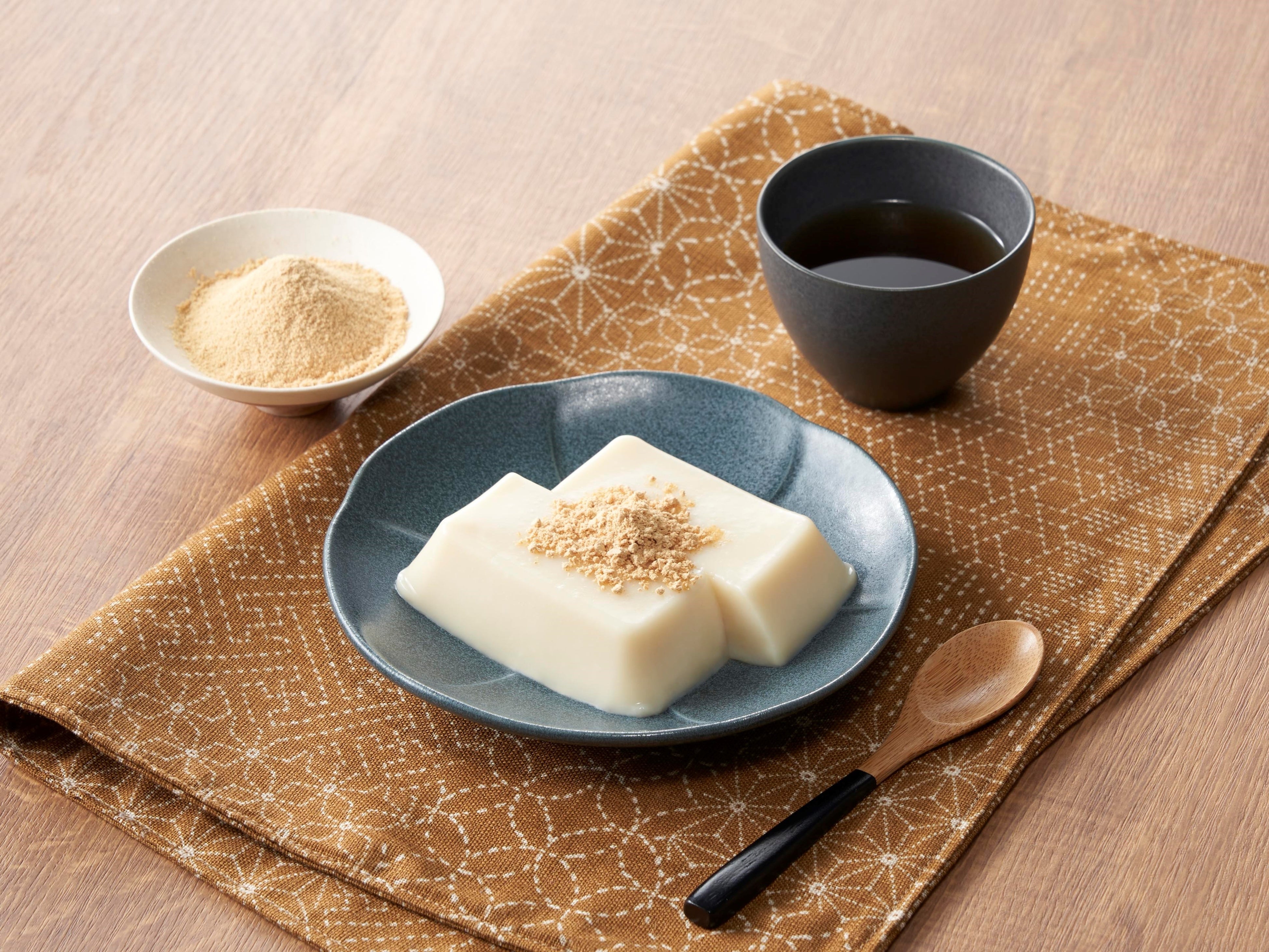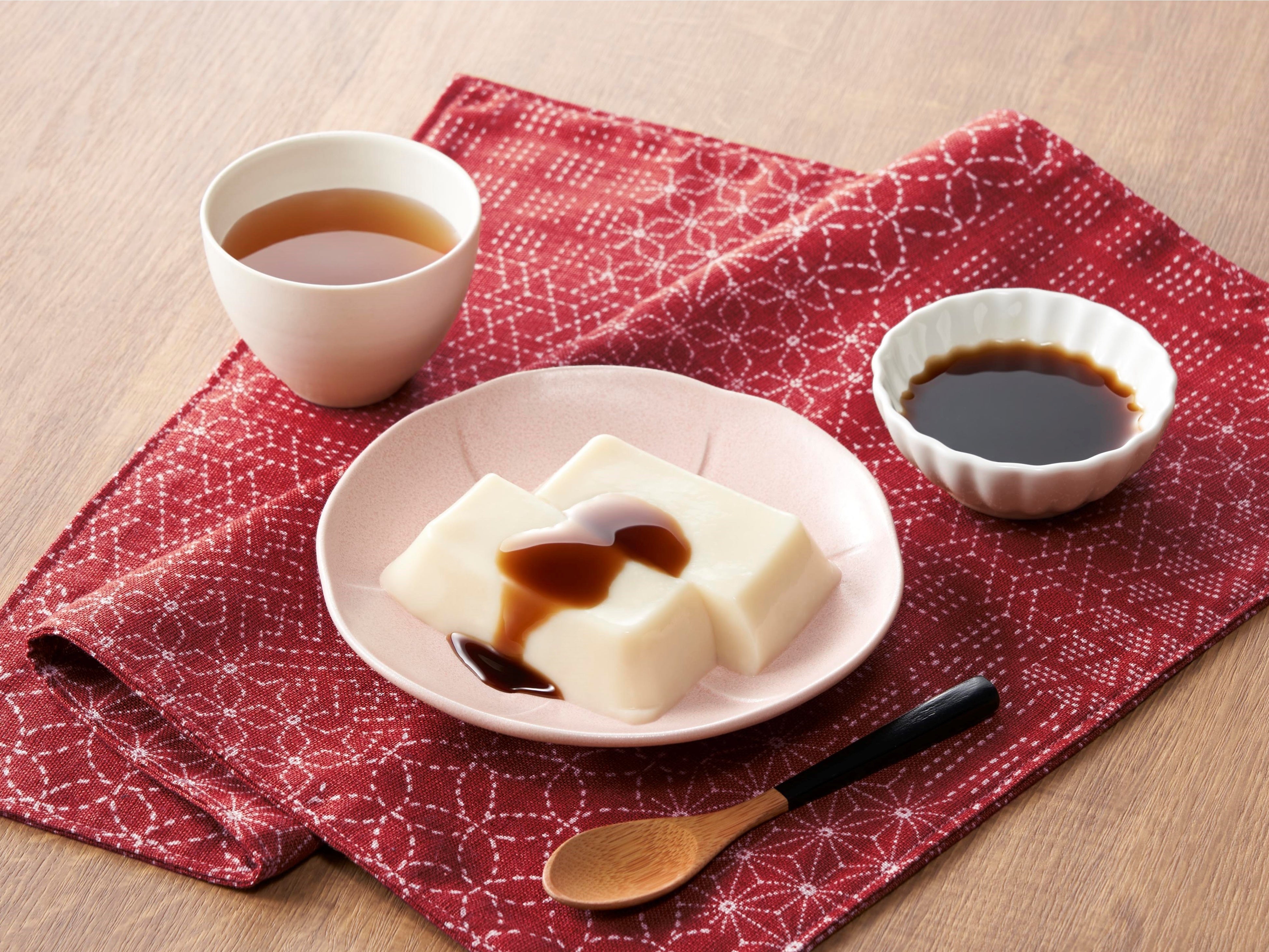 もちっとした弾力がありながらも、口内でとろける新食感!豆乳の風味を引き立たせ、味の変化を楽しめる別添「きなこ/みたらしソース」付きです。