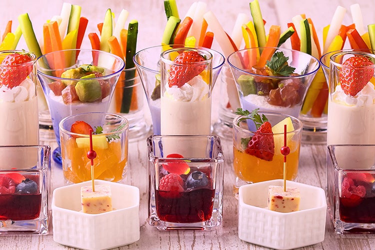 デザートは、「苺ナージュ」「苺ミルクレープ」などの苺スイーツや、ご当地フルーツ“アドベリー”を使用した「アドベリー・ゼリー」など、カラフルな12種類をお楽しみいただけます。