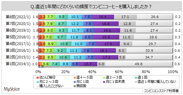 - コンビニコーヒーの購入頻度