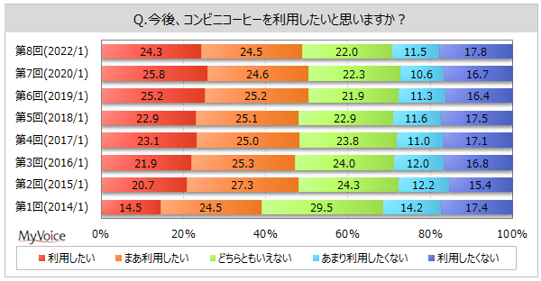 マイボイスコム株式会社(東京都千代田区、代表取締役社長:高井和久)は、インターネット調査を中心に提供している伊藤忠グループのリサーチ会社です。この度、8回目となる『コンビニコーヒー』に関するインターネット調査を2022年1月1日~5日に実施し、10,145件の回答を集めました。調査結果をお知らせします。