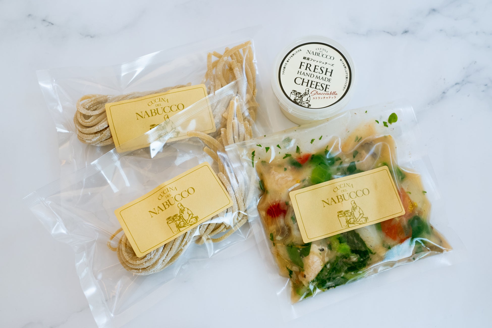 自宅でレストランの味を楽しみたい、でもお料理する時間はできるだけ短くしたい、そんな時に麺を茹でて、ソースを温めるだけでまるでNABUCCOにいるような気分を味わえます。食卓が一気に華やぐので、おもてなしの時やホームパーティーにもおすすめです。
