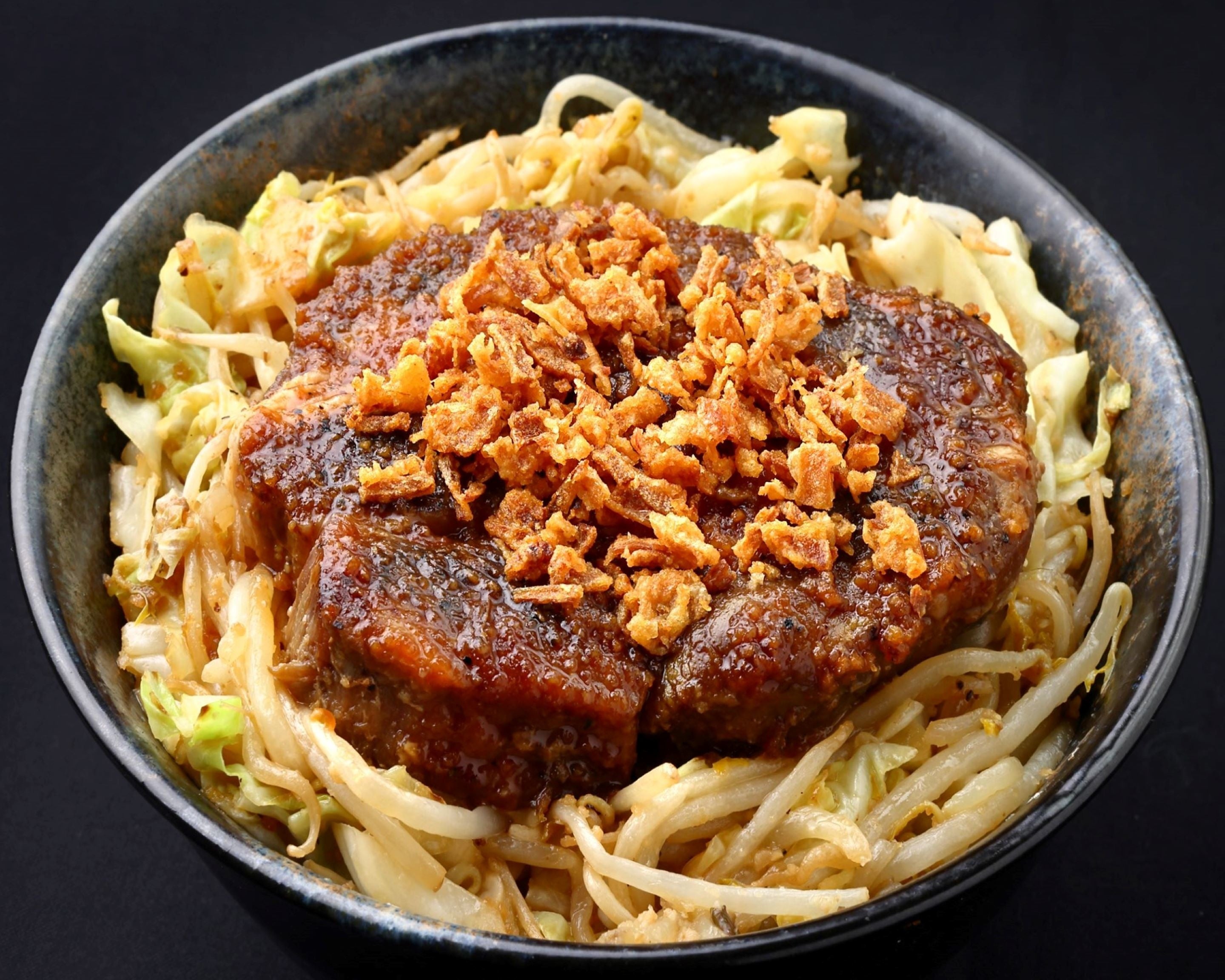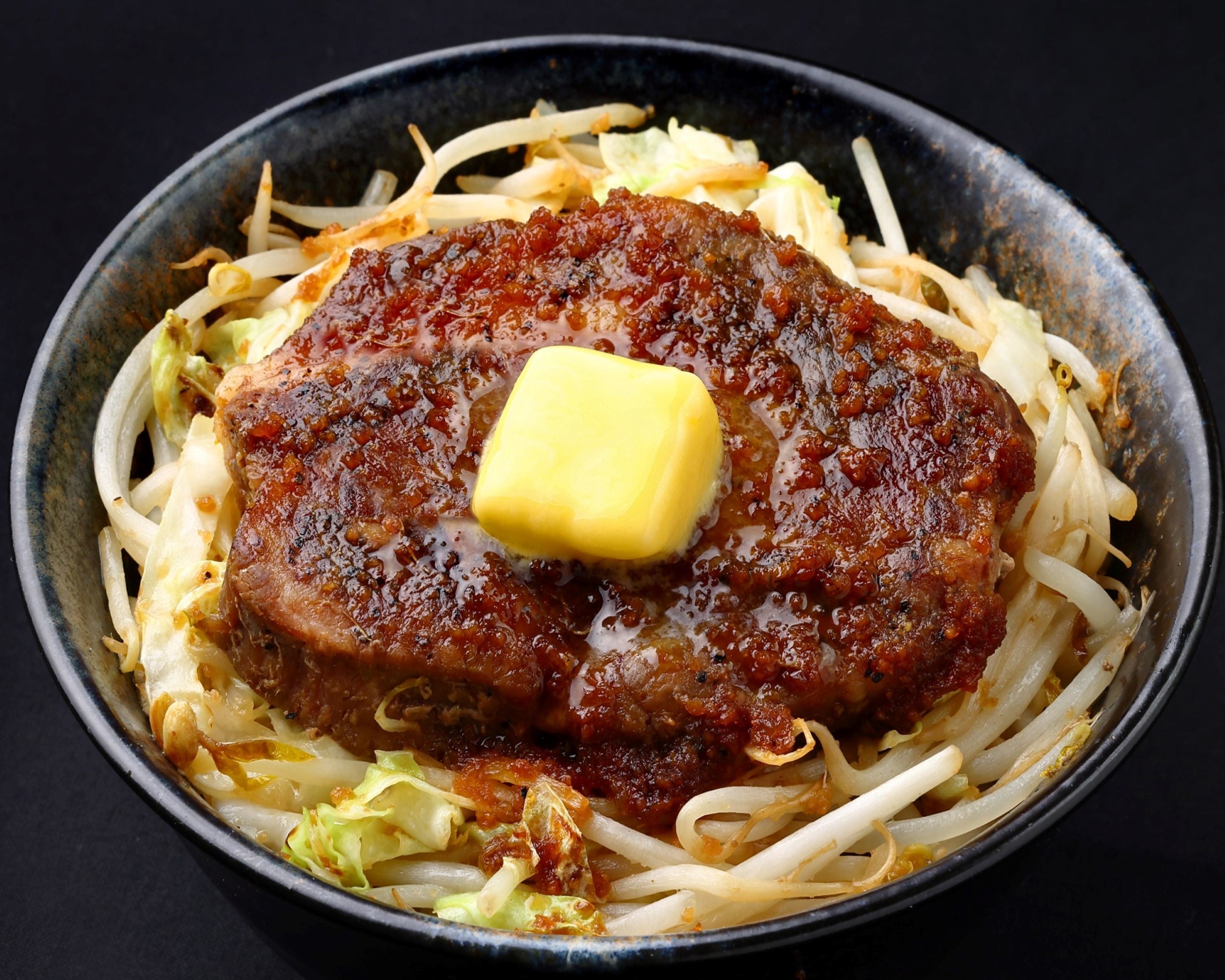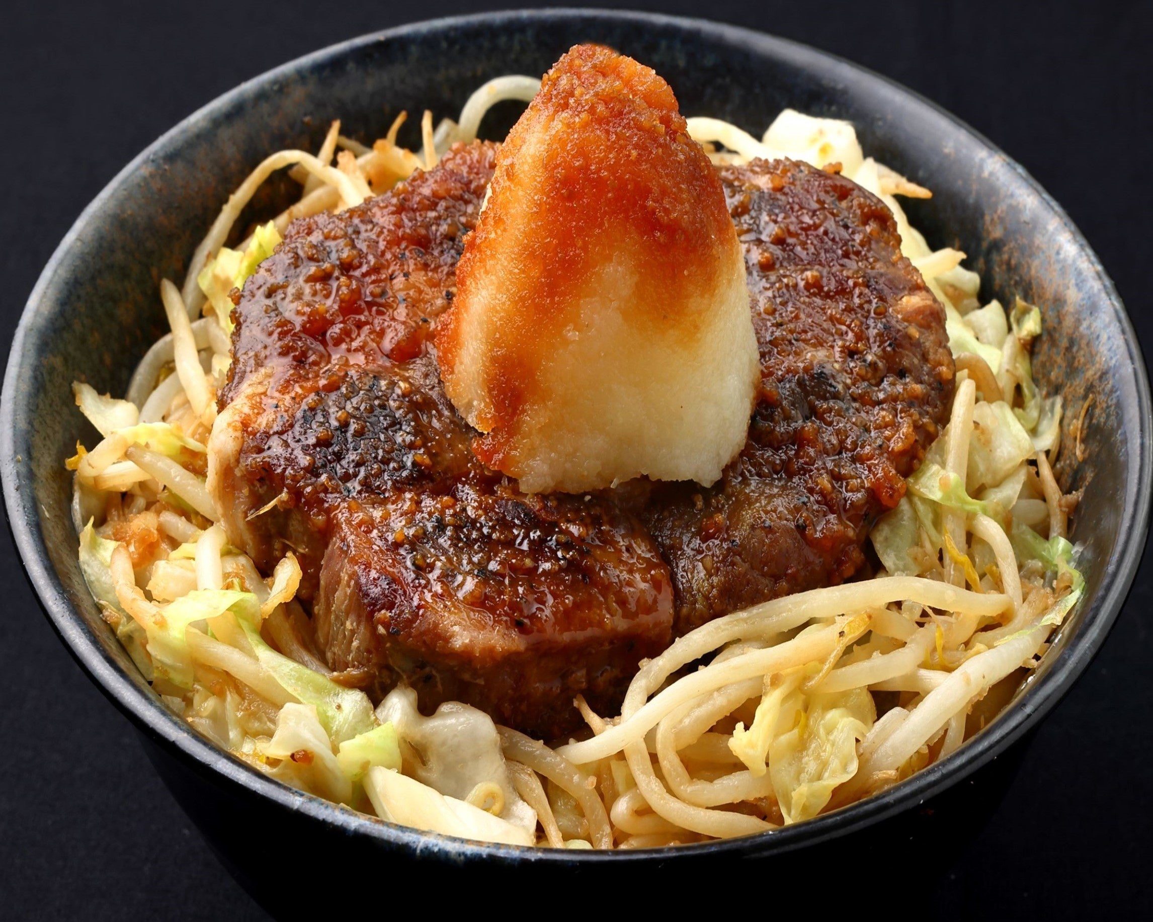 ソースは3種類をご用意。ニンニクの香りとバターのコクが背徳的な「ガーリックバター」、さっぱりと食べられる「和風おろし」、ご当地グルメの四日市トンテキに寄せた「王道トンテキソース」。どれもお肉はもちろん、たっぷりの野菜炒めにも絡めて、オンザライスの丼スタイルでご提供します。もっと肉が欲しい方は、肉ダブル(2枚)にすることも可能!