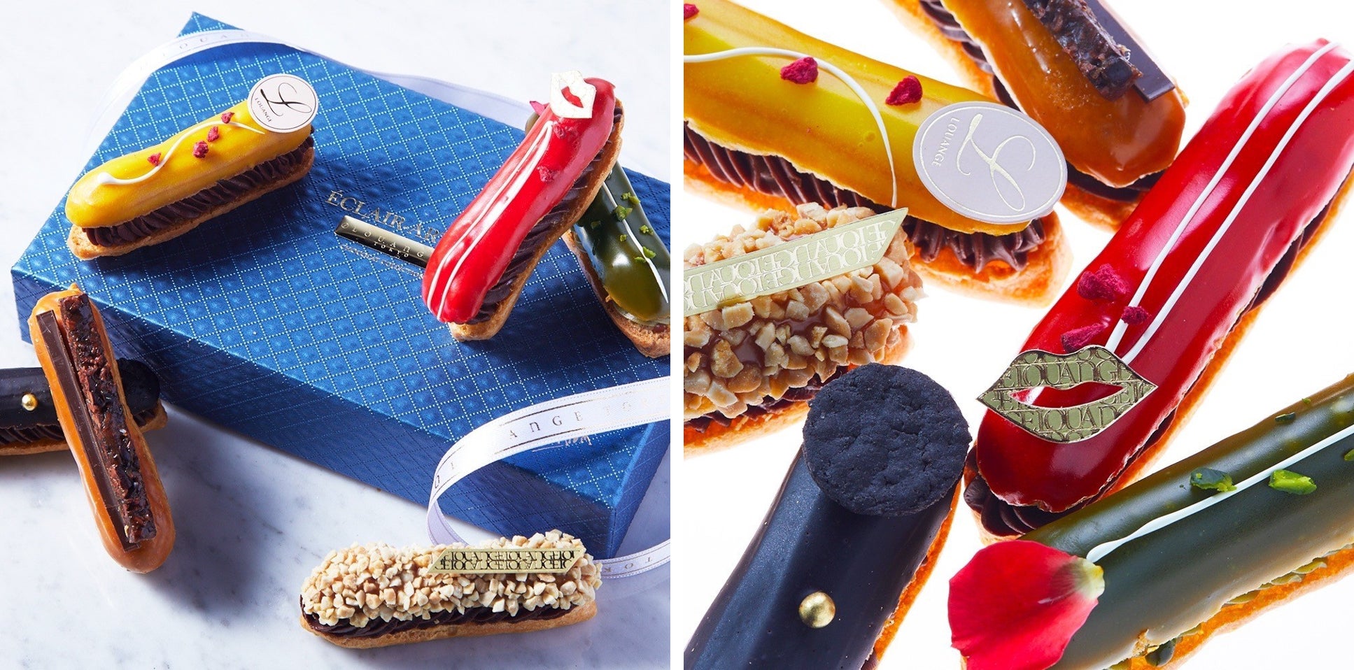 あまおう×ライム/バニラ×Maracaibo6 /コーヒー×キャラメル/パッション×フランボワーズ /ピスタチオ×グリオット/プラリネの6種類の新感覚なフレーバーをお楽しみ頂ける、プレミアムなエクレアです。使用しているチョコレートは、2004年イタリアンアカデミーオブチョコーレートクーベルチュール部門で世界第一位を獲得した「マラカイボ65%」をはじめ、ジヴァララクテやカライブなど最高級のクーベルチュールを使用しています。