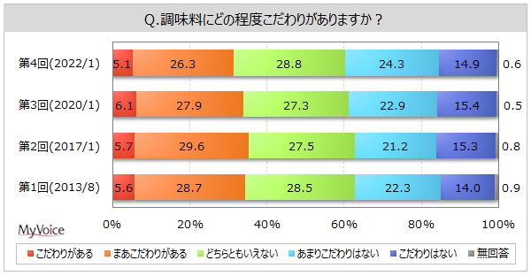 マイボイスコム株式会社(東京都千代田区、代表取締役社長:高井和久)は、インターネット調査を中心に提供している伊藤忠グループのリサーチ会社です。この度、4回目となる『調味料』に関するインターネット調査を2022年1月1日~5日に実施し、10,130件の回答を集めました。調査結果をお知らせします。