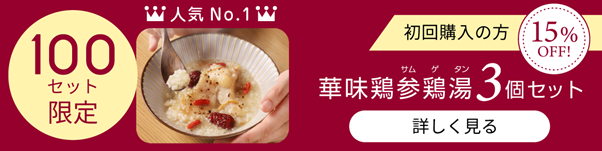 ◎人気NO.1の華味鶏のサムゲタンセットを100食限定で15%offで購入頂けます。
