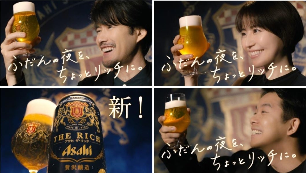 “プレミアムビールを超えるうまさ”を目指した『新アサヒ ザ・リッチ』のこだわりと美味しさを表現する本CM。ザ・リッチへの深い愛があふれる3人にご注目ください。