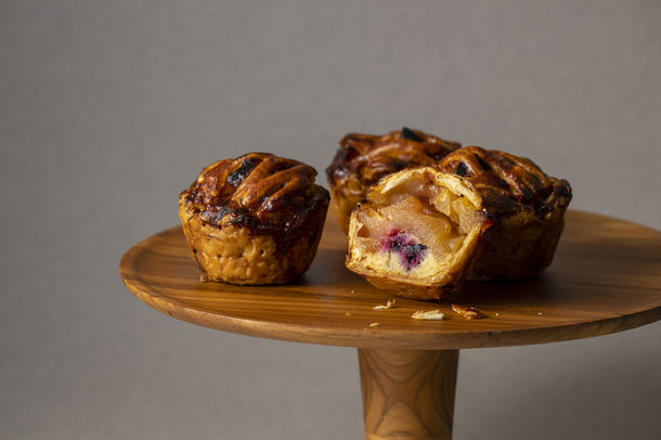 青森県産の紅玉をスライスしてのせて焼いたりんごパイ。サクサクの食感がくせになります。