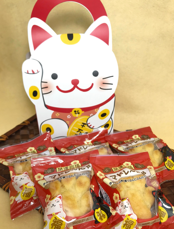 つる平ではこれまでも「“ひととき”の傍にそっとある小倉のお菓子屋」という企業コンセプトの下で、縁起にちなんだお菓子を複数開発。こちらの「マドレ〜にゃ」は2020年に林龍平酒造場とのコラボでつくった「福よか饅頭 鶴と龍」や、2019年に販売スタートした伊予柑と白餡の大福を挟んだどら焼き「令和恵比寿どら」に続く、当社の縁起菓子シリーズとなります。