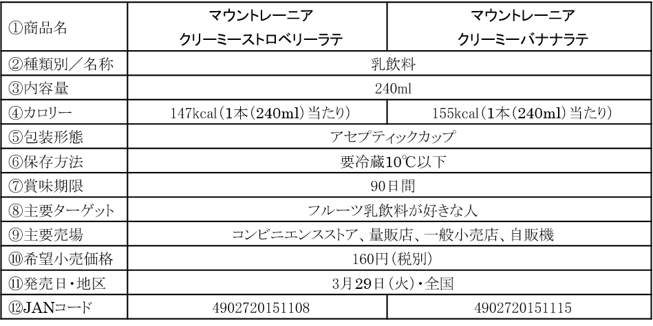 森永乳業は、チルドコーヒー売上No.1ブランド※の「マウントレーニア」から、コーヒーを使用しないマウントレーニアの新シリーズ「マウントレーニア クリーミーストロベリーラテ」「マウントレーニア クリーミーバナナラテ」を3月29日(火)より全国にて新発売いたします。