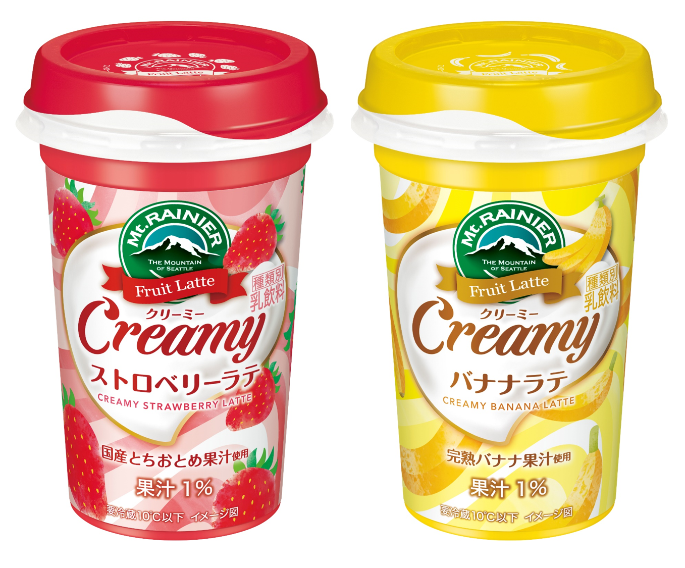 「マウントレーニア クリーミーストロベリーラテ」はしっかりとしたミルク感と、国産とちおとめ果汁の甘さや華やかな香りを、「マウントレーニア クリーミーバナナラテ」はしっかりとしたミルク感と、完熟バナナ果汁の濃厚な甘さをお楽しみいただけます。コーヒーを使用していないため、コーヒーが苦手な方にもマウントレーニアの世界観をお楽しみいただけるクリーミーなフルーツラテです。