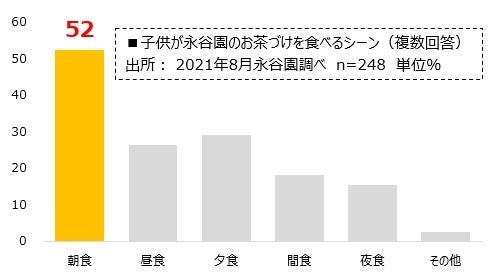 子どもの入学を控えた子育て世帯のママパパは、新生活で子どもが朝食を食べてくれるか不安を抱えています。そんな悩みを解消してくれるのが、実は「お茶づけ」。サラサラと食べやすいお茶づけは、子どもの食シーンでも朝食の利用が多いんです。