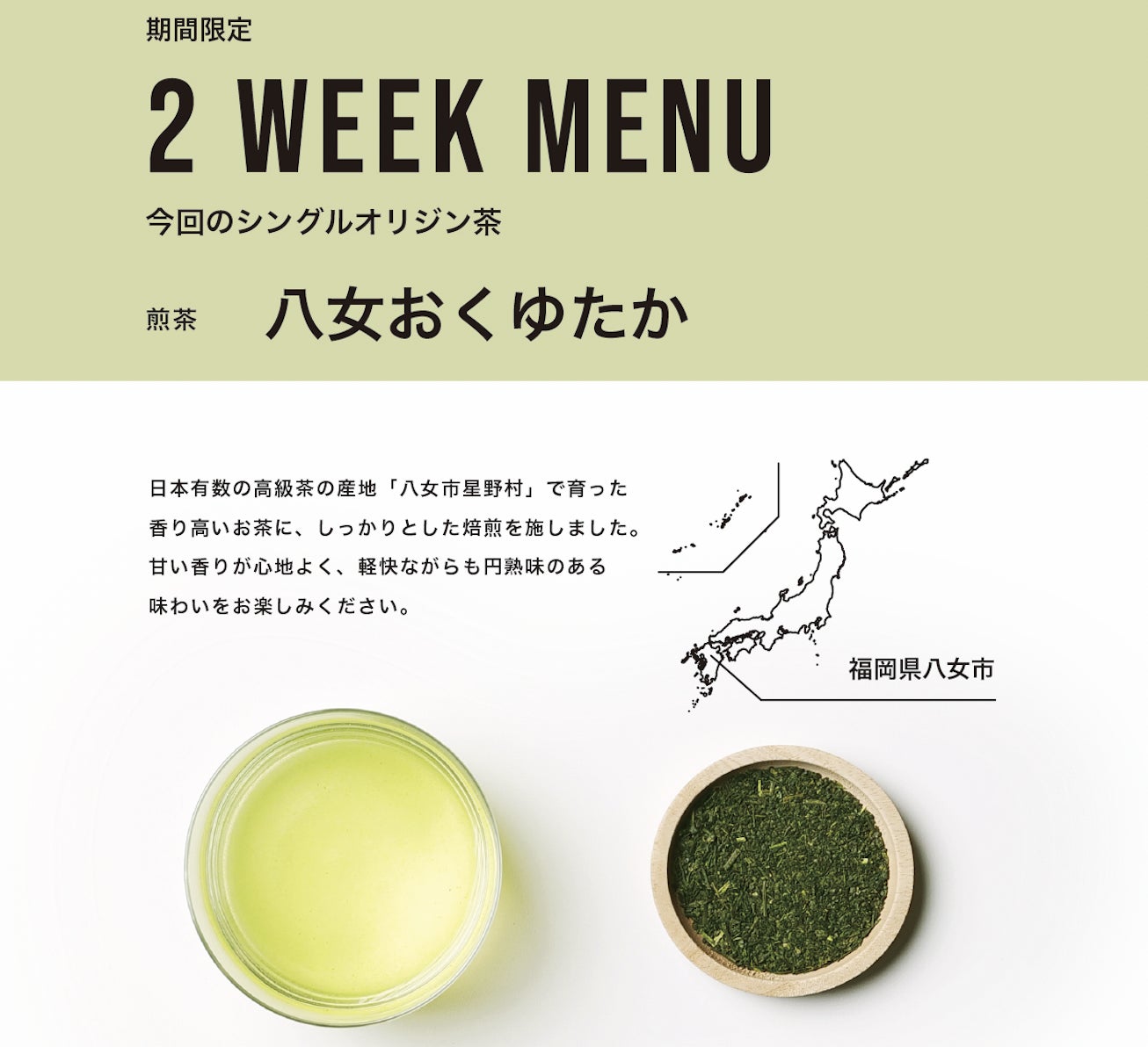 期間限定の茶葉は2週間ごとに入れ替わるため、あなたの知らない美味しいお茶に出会える楽しみもあります。気になる方は、公式HPから詳細をチェックしてください。