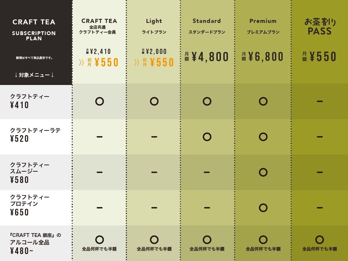 『CRAFT TEA』は、1日1杯、無料で5種類以上のお茶から好きなものを受け取れるサブスクリプションサービス(定額制サービス)も提供しています。
