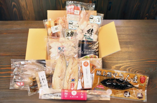 いわきが誇る干物などの水産加工品の詰め合わせ(中身はおまかせ)を月に一度お届けするサブスクリプションサービス。昔ながらの製法で丁寧につくられたブランド品を中心に、基本的に焼くだけ、湯煎するだけの簡単調理商品になっています。4品コース3,900円、8品コース5,900円、12品コース7,800円(税込、送料込)。