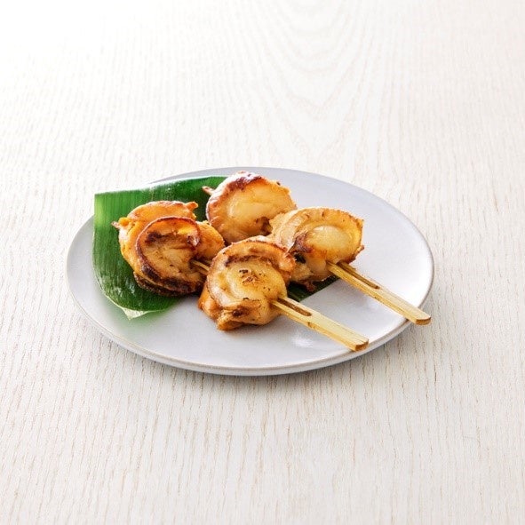 大ぶりの国産のホタテの魚串、見た目も味もご自宅のお食事を楽しくする一品です。