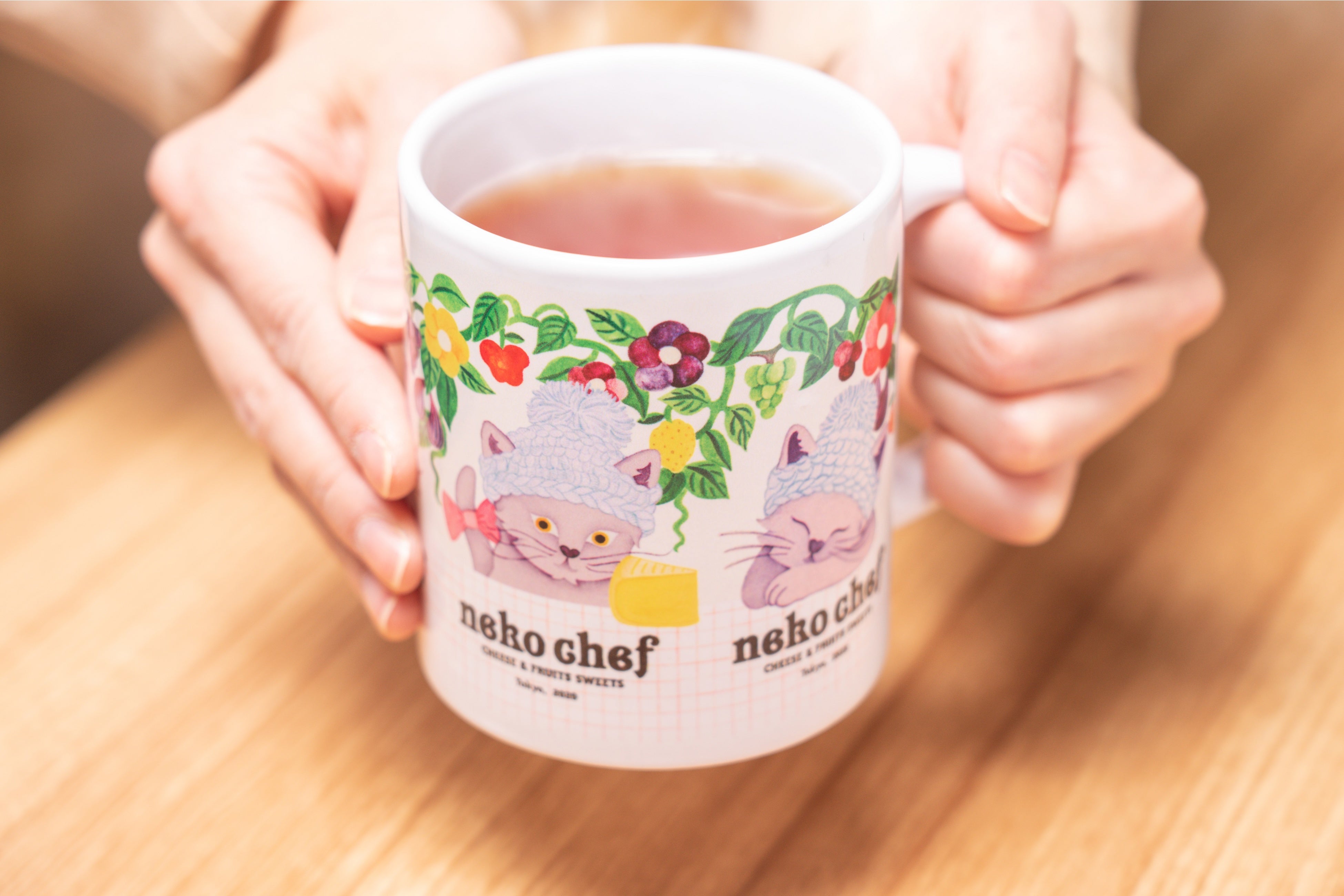 ポーチのデザインは「ネコシェフ」、マグカップは「ソフィ」柄でご用意致しました!スイーツ好きの方にはもちろん、ネコ好きの方にはたまらないイベントです!可愛らしいネコシェフの世界観とともに、絶品のスイーツをお楽しみください!