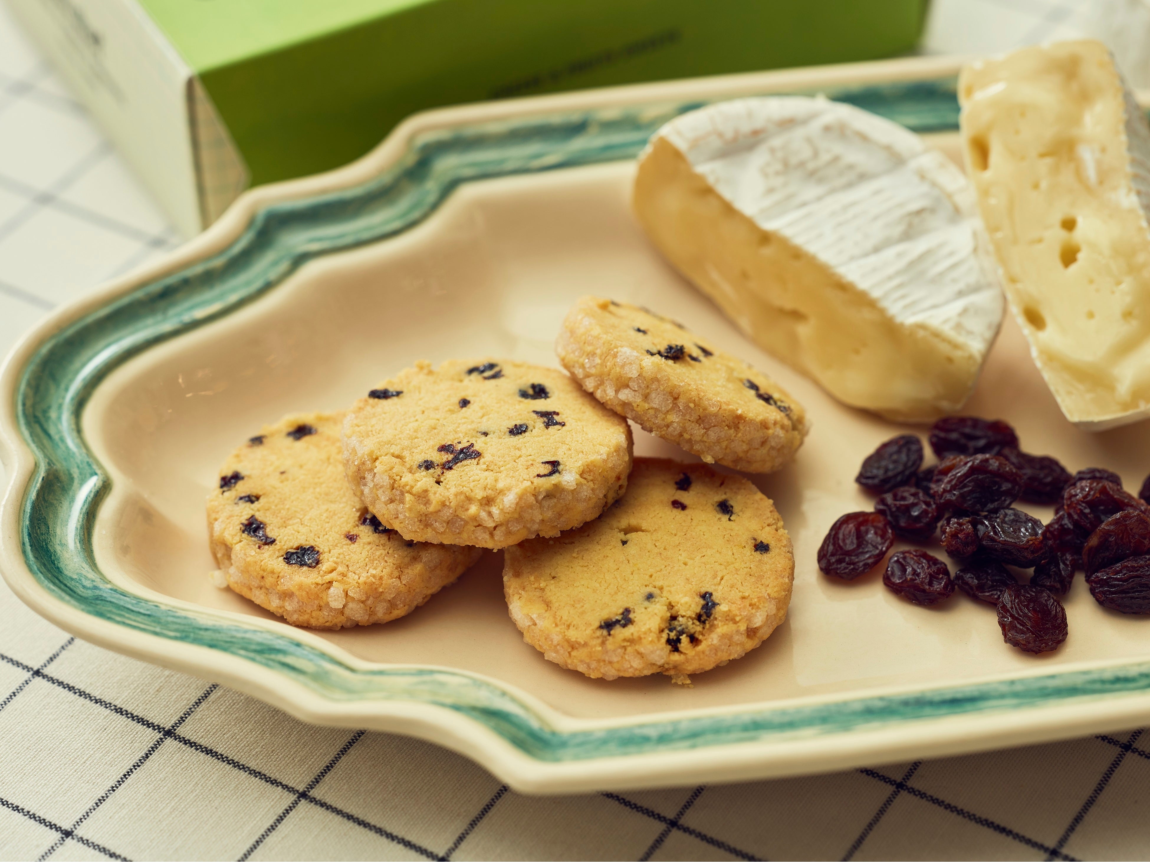 濃厚な味わいのカマンベールクッキーに、甘みあるレーズンの食感が楽しい一品です。