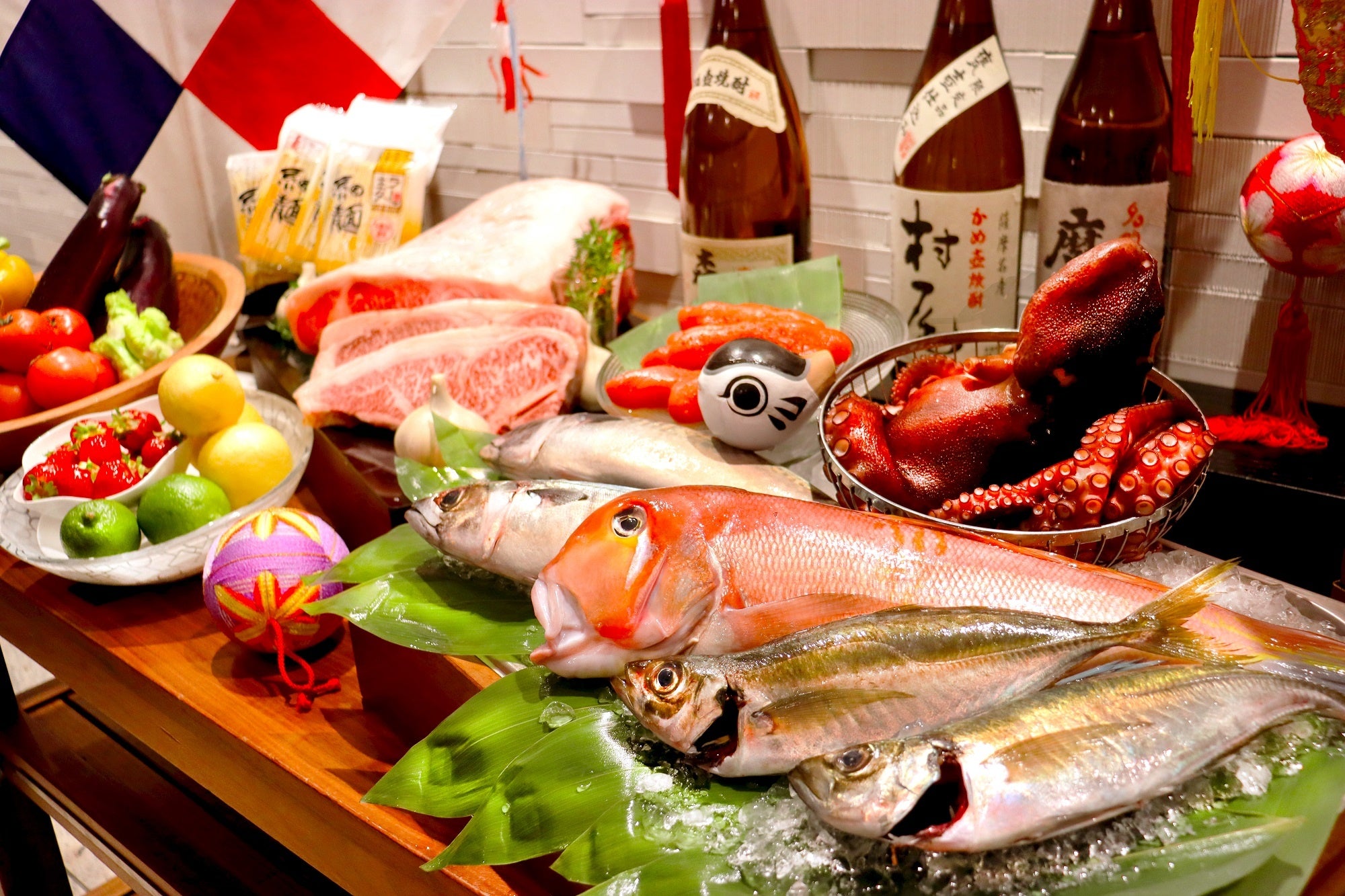 フグのフリット/もつ鍋/博多豚骨ラーメン/合馬産筍の木の芽味噌焼き/焼きカレー/じんだ煮/関門産たこのカクテル/若松トマトのカプレーゼ/おきゅうとサラダ