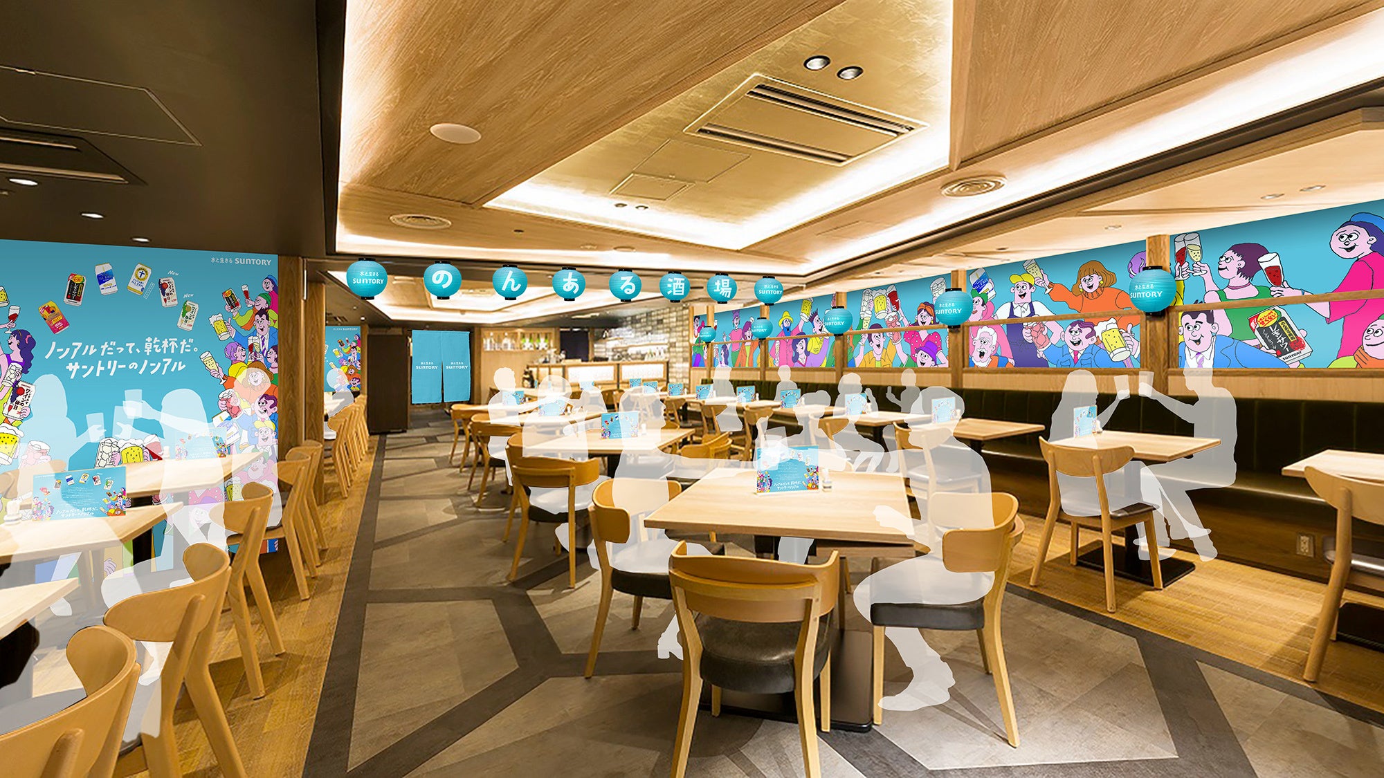 「のんある酒場」では、アルコール度数0.00%のビールテイスト・RTDテイスト・ワインテイストなど、さまざまな当社ラインナップ商品に加え、「のんある酒場」でしか飲めないオリジナルメニューを提供し、ノンアルコール飲料の美味しさやさまざまな楽しみ方をお伝えします。お食事も「ノンアル」にぴったりのメニューを提案するなど、「ノンアル」の魅力を存分に体感でき、お酒を飲む人も飲まない人も一緒に楽しめる場を目指します。