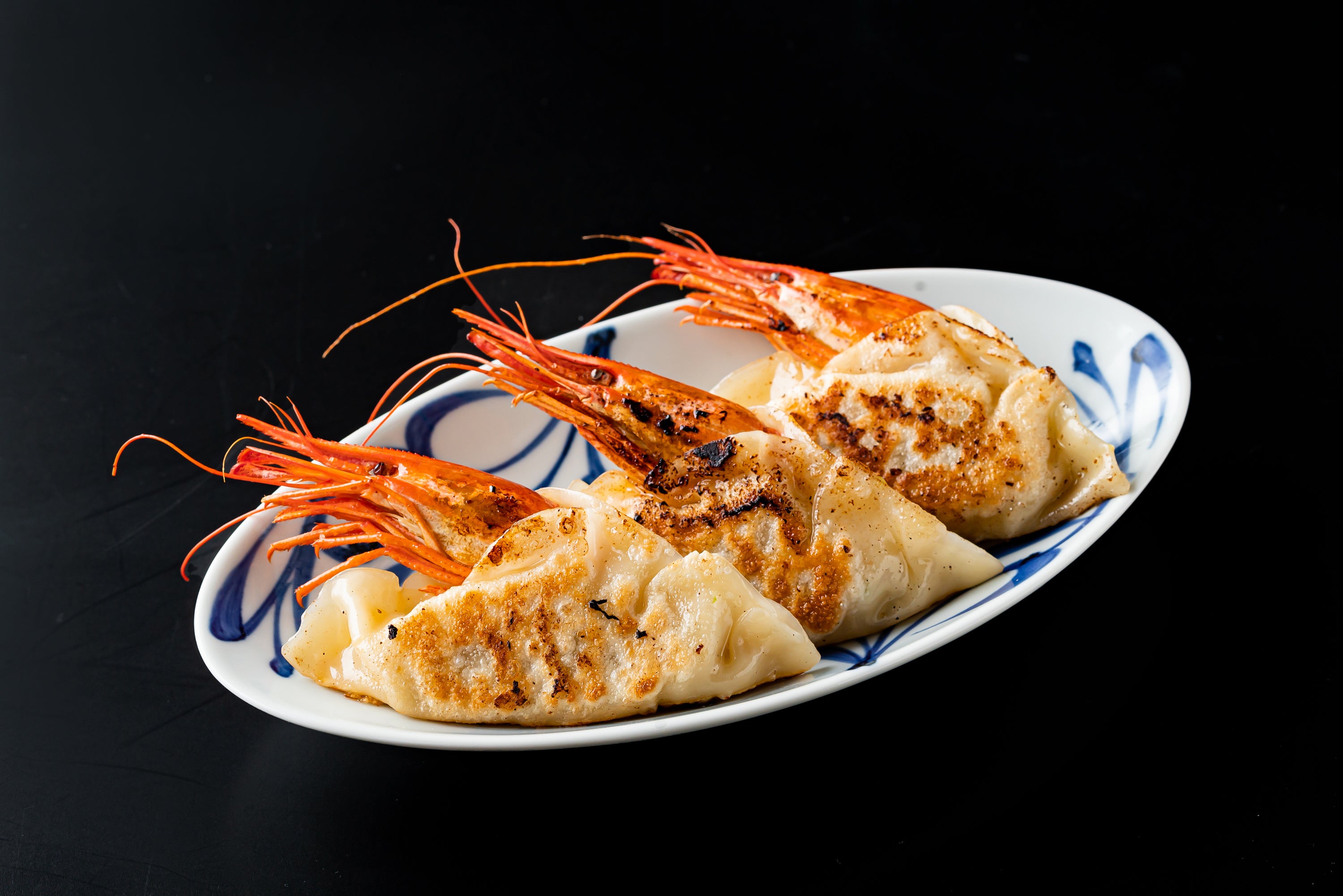 抜群の風味で知られる高級エビ「北海シマエビ」はオホーツク海、北海道沿岸などに生息し、“海のルビー”、“北海道の秘味”などと呼ばれています。北海道各地では資源保護のため漁業規制が設けられ、漁期は夏と秋にそれぞれわずか1ヶ月と短く、厳しく管理されています。そんな貴重な北海シマエビを、熟練した職人技によってまるごと一尾を餃子に包んだ“究極のグルメ餃子”ができました。北海シマエビの濃厚な香りとぷりっとした食感、長芋・蓮根などの歯ごたえとの組み合わせが、最高のハーモニーを奏でます。