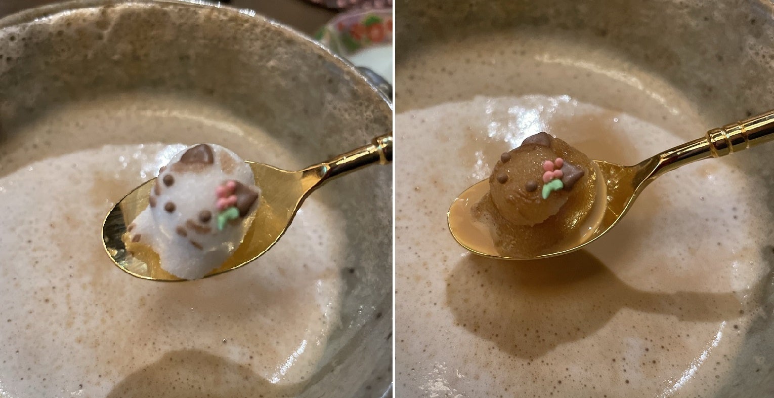にゃんとカフェラテにも猫さんが!! 猫部トークに寄せられた写真や、和堂スタッフの猫さん、そして童話猫さんがランダムで登場します。可愛いお顔を眺めながら、ほっこりできちゃうホットドリンクです。