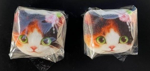 卵白を寒天で固めた優しい甘みの和風マシュマロに、メインビジュアルの三毛猫さんをプリント。かわいすぎて食べるのがもったいない。9個セットで紙箱入りなので、お土産にもおすすめです。