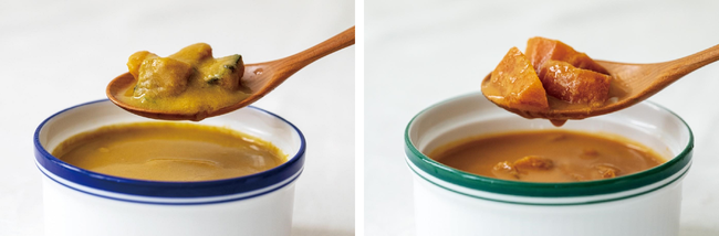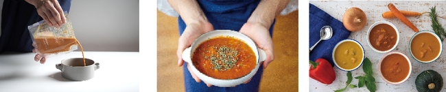 4.1食ごとのレトルトパック。230g/1食のお腹いっぱいサイズ。ポタージュでかつ具材入り。