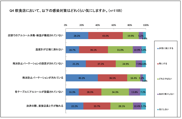 →従業員が食材に手を触れるといった「他者との接触」を気にする人が多いため、重点的に感染対策をする必要がある