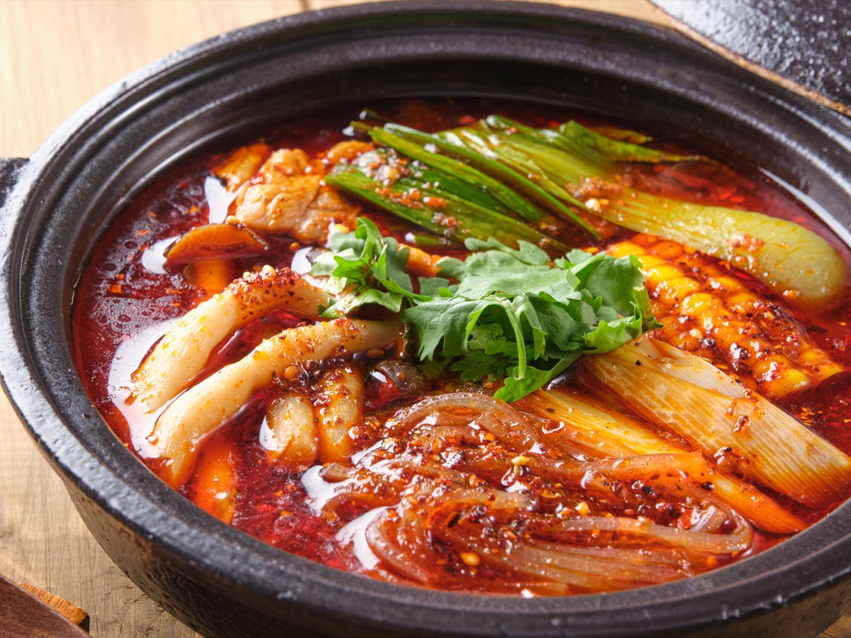 漢方でも使われるスパイスを配合した特製スープにラー油を加え、肉や野菜を煮込み食べる四川省で愛されている料理です。今回は以下の9種のスパイスを独自に配合しました。
