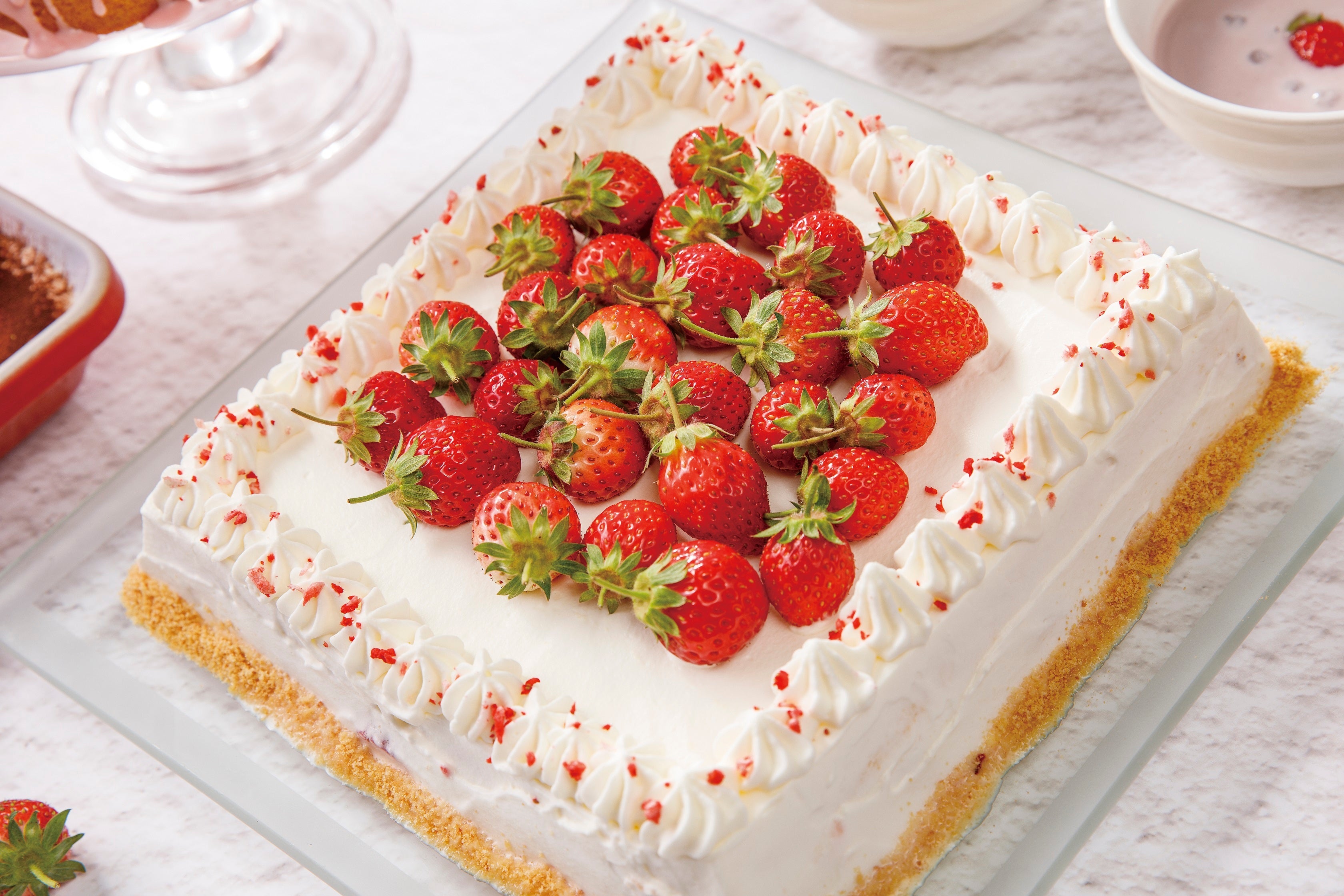 ふわふわのスポンジケーキ生地、生クリームといちご、ジャムを重ねたいちごデザートの王道。