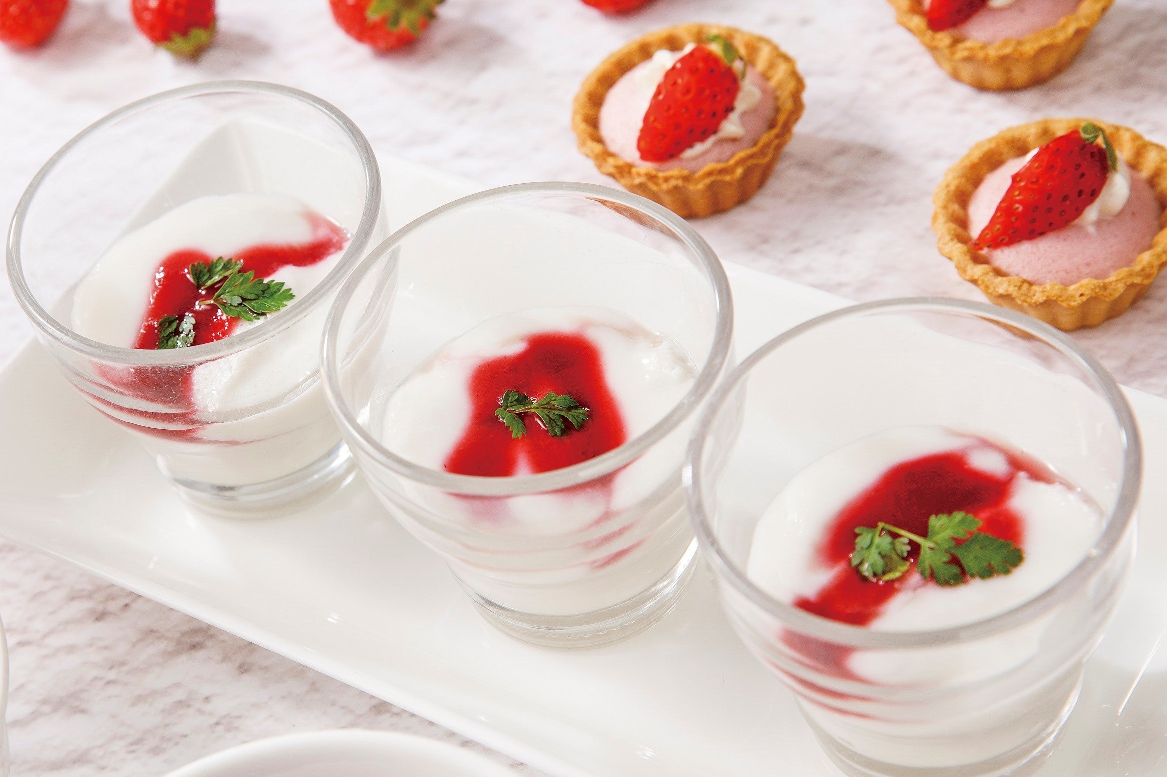 ココナッツミルク風味のブランマンジェに甘酸っぱいフランボワーズソースでさっぱりと